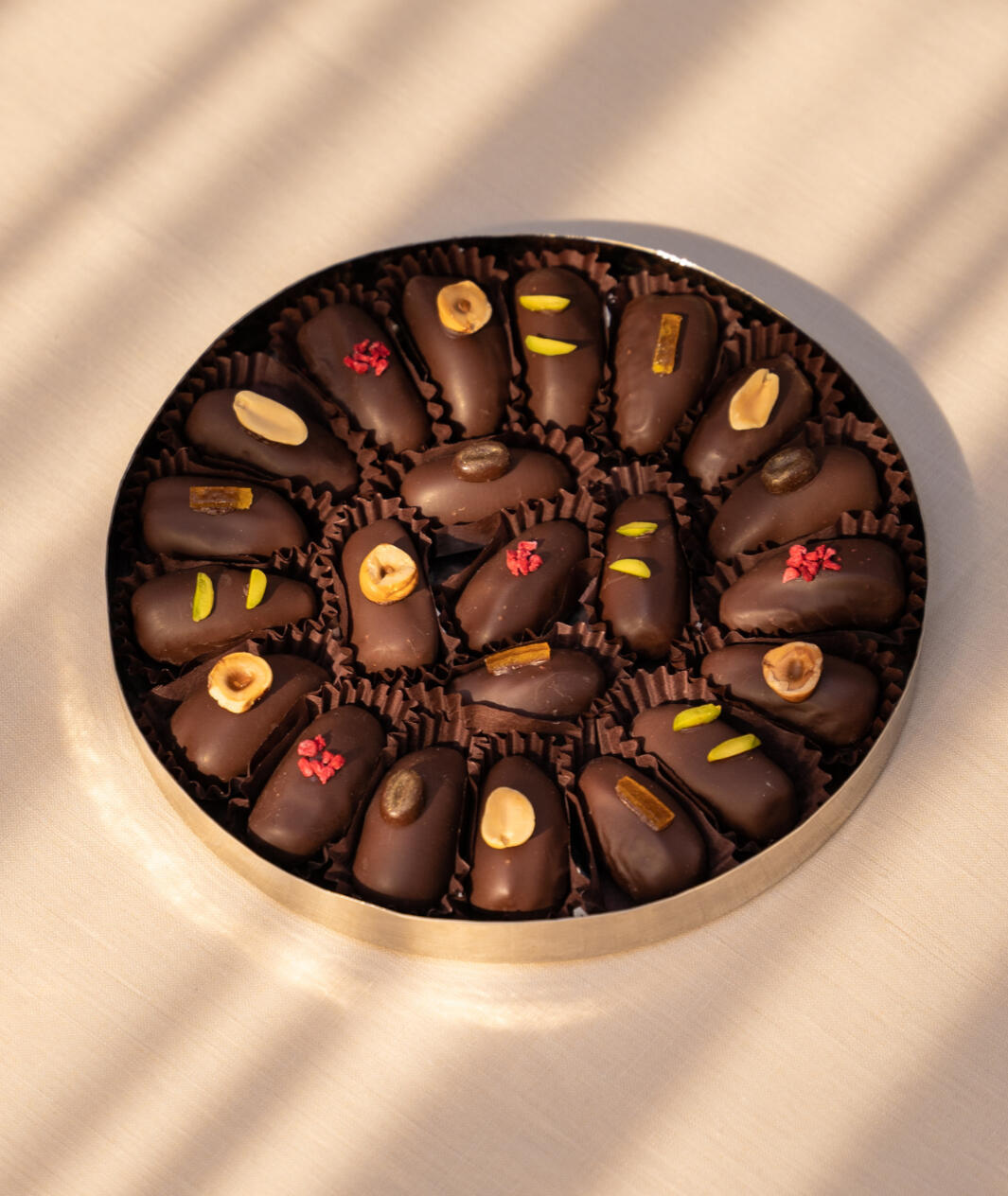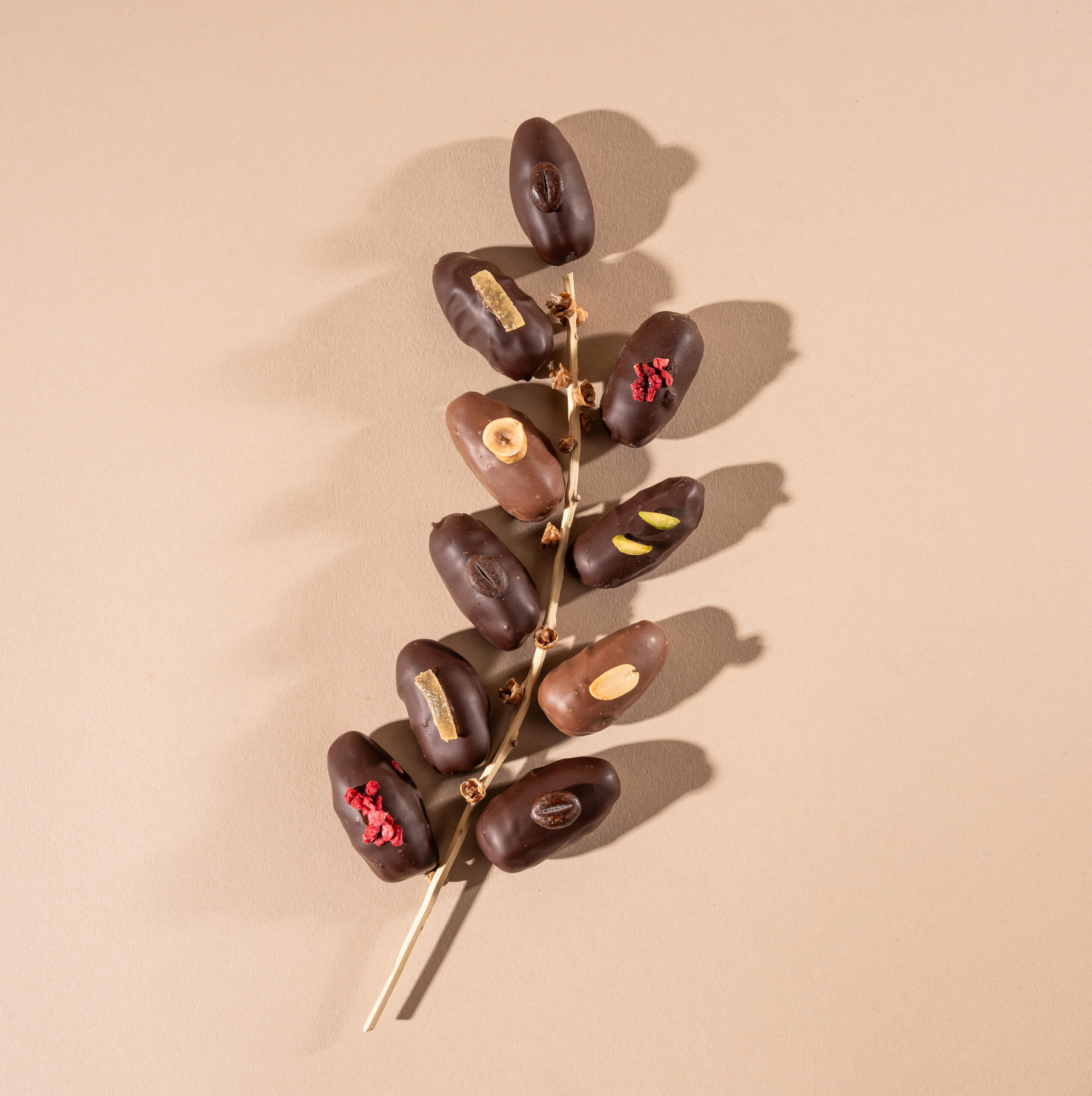 Fourrées de saveurs délicates, enrobées du chocolat Valrhona le plus fin, nos dattes deviennent une expérience raffinée — à offrir, partager ou savourer.